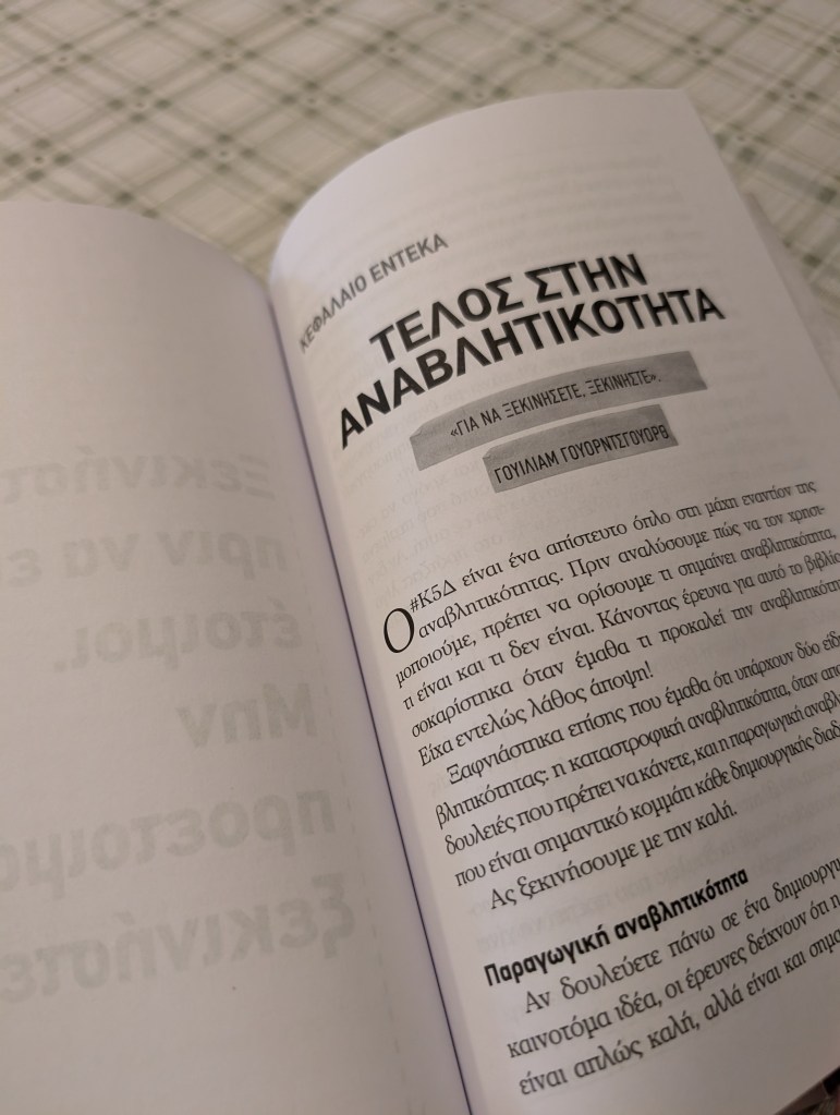 Μια μέρα, σηκώθηκα το πρωί από το κρεβάτι, χωρίς πολλή διάθεση, ήπια ένα ποτήρι νερό και σκεφτόμουν πόσο ήθελα να αποφύγω όλα αυτά που είχα να κάνω. Φόβος της αποτυχίας; Αμηχανία για το άγνωστο; Σίγουρα με είχε πιάσει η αίσθηση της αναβλητικότητας και όλο αυτό διογκώθηκε στην σκέψη μου. Ο εγκέφαλος παίζει περίεργα παιχνίδια μερικές φορές. Άρχισα να διαβάζω αυτό το βιβλίο και σιγά σιγά ξεκίνησα με αστείο τρόπο να εφαρμόζω την τεχνική.